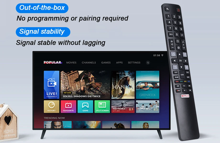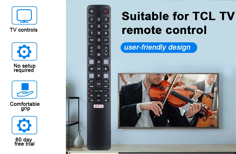 RC802N Replaced Remote fit for TCL Full HD Smart LED TV: