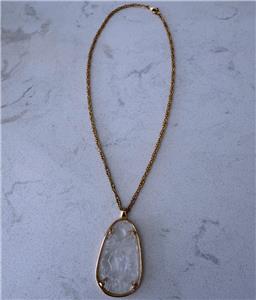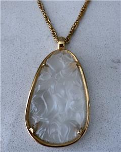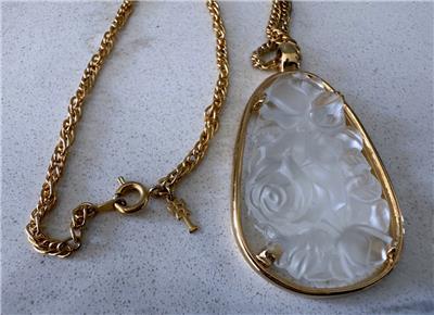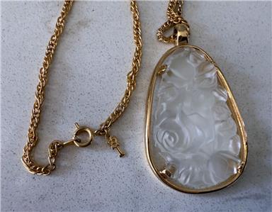 VINTAGE TRIFARI GLASS FLOWER NECKLACE PENDANT w/ TRIFARI HANG TAG 18" CHAIN.EXCELLENT CONDITION.
