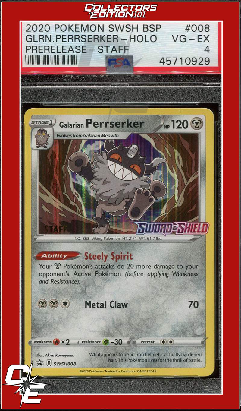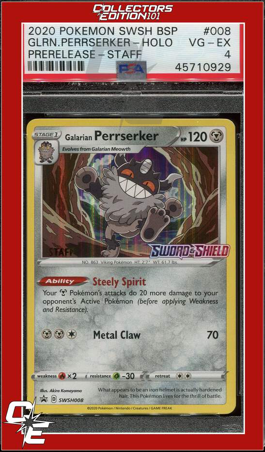 Black Star Promo Galarian Perrserker SWSH008 Sword & Shield Prerelease STAFF PSA 4