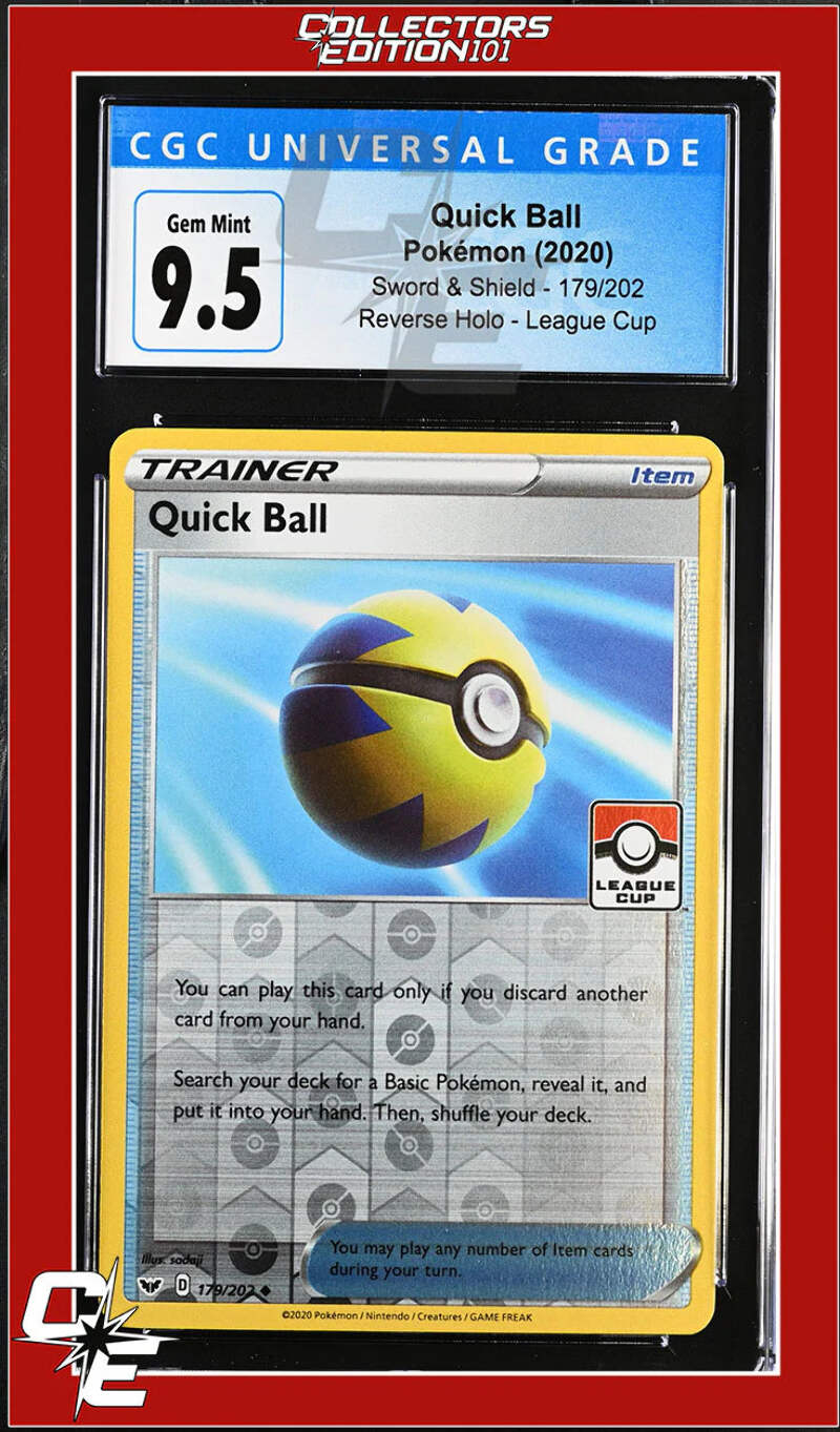 Sword & Shield Quick Ball 179/202 Reverse Holo League Cup CGC GEM MINT 10