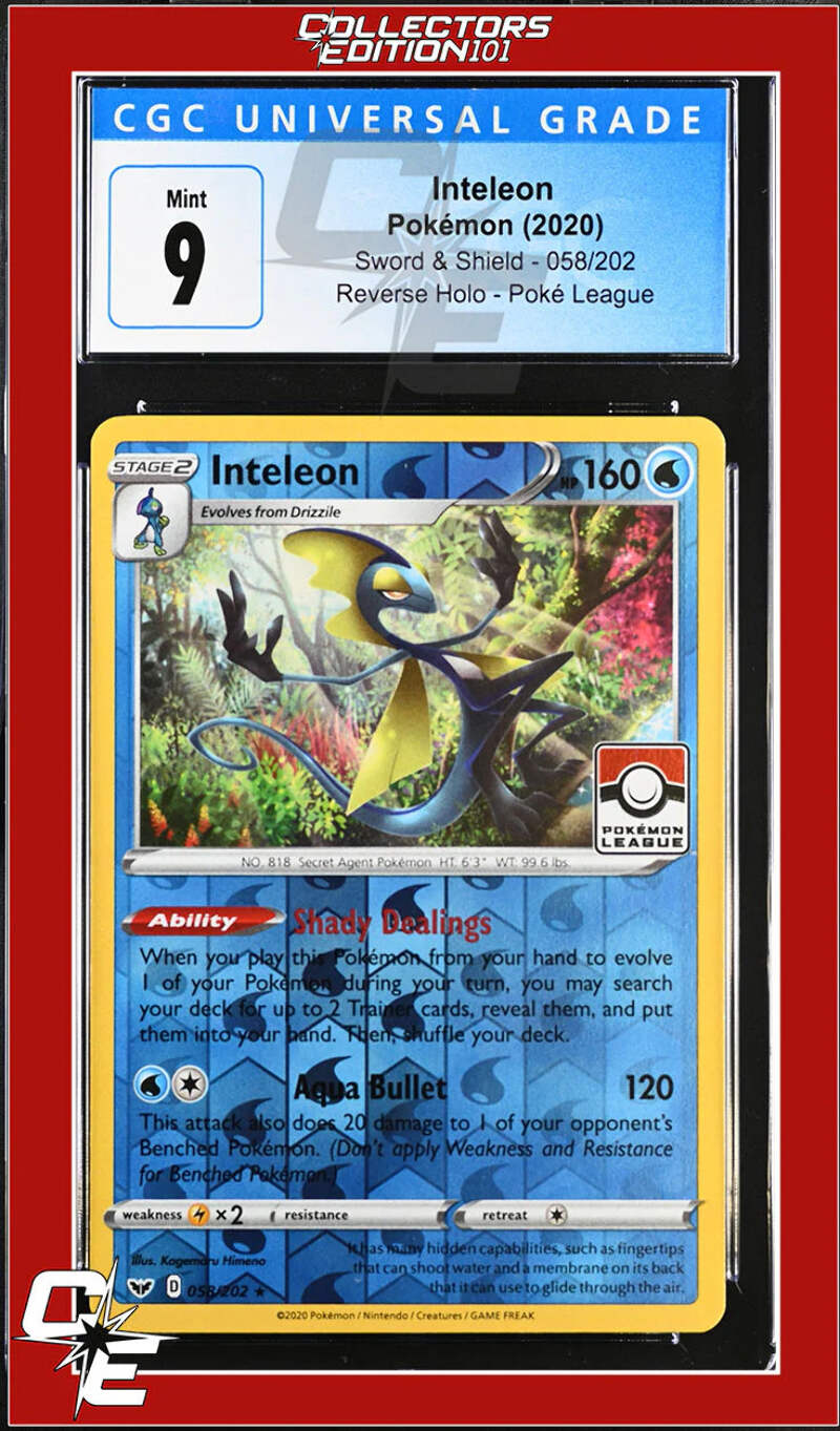 Sword & Shield Inteleon 058/202 Reverse Holo Pokemon League CGC 9