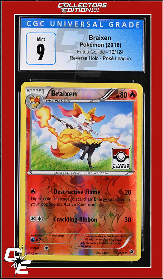 Fates Collide Braixen 12/124 Reverse Holo Pokemon League CGC 9