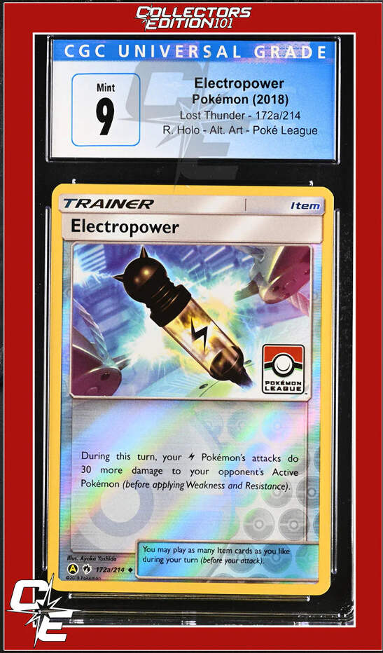 Lost Thunder Electropower 172a/214 Reverse - Alternate Art Pokemon League CGC 9