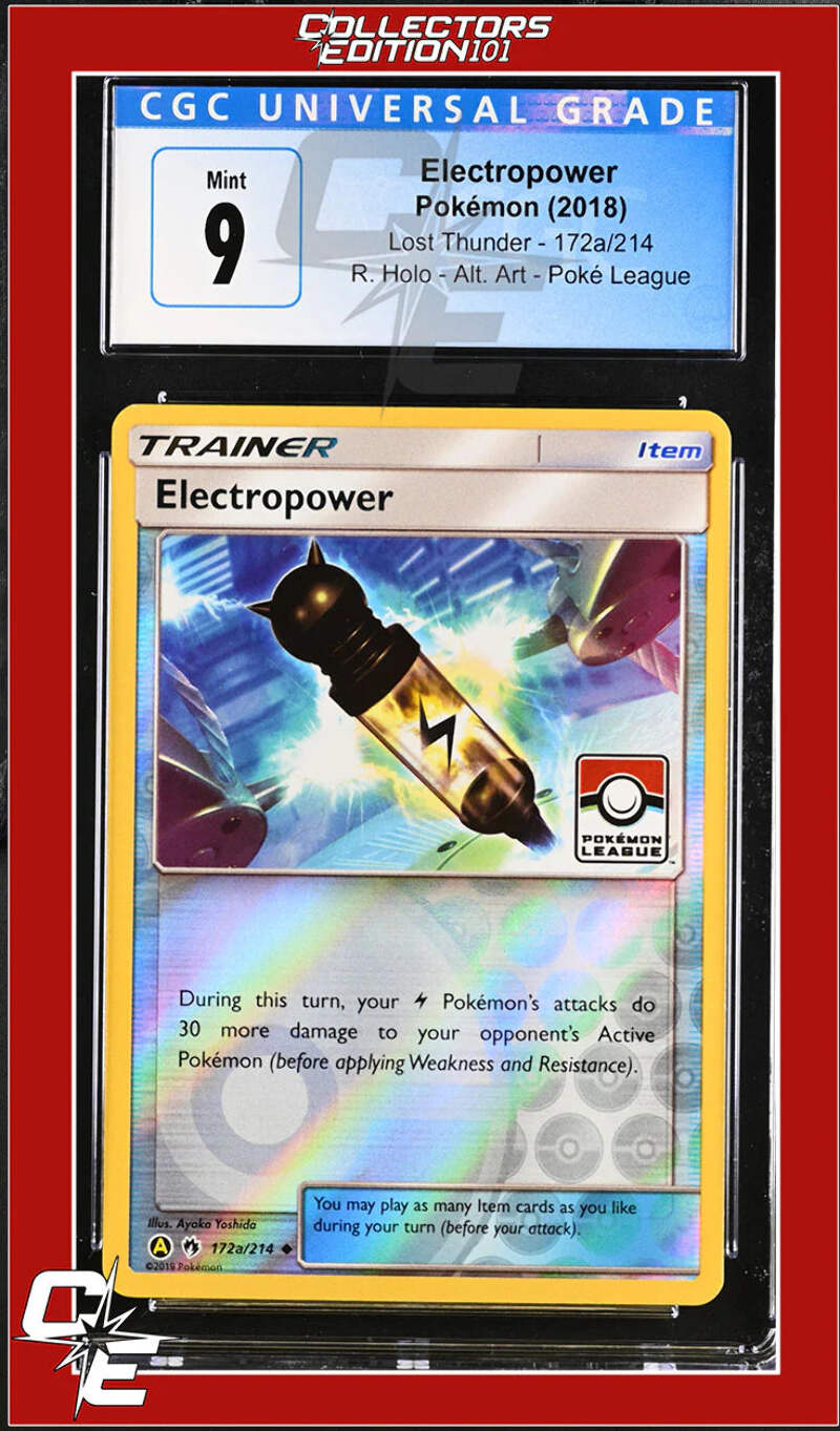 Lost Thunder Electropower 172a/214 Reverse - Alternate Art Pokemon League CGC 9