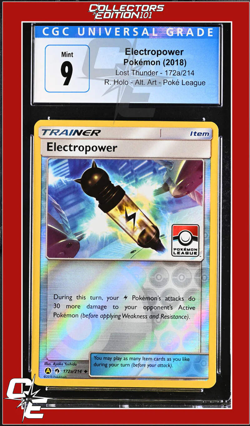 Lost Thunder Electropower 172a/214 Reverse - Alternate Art Pokemon League CGC 9