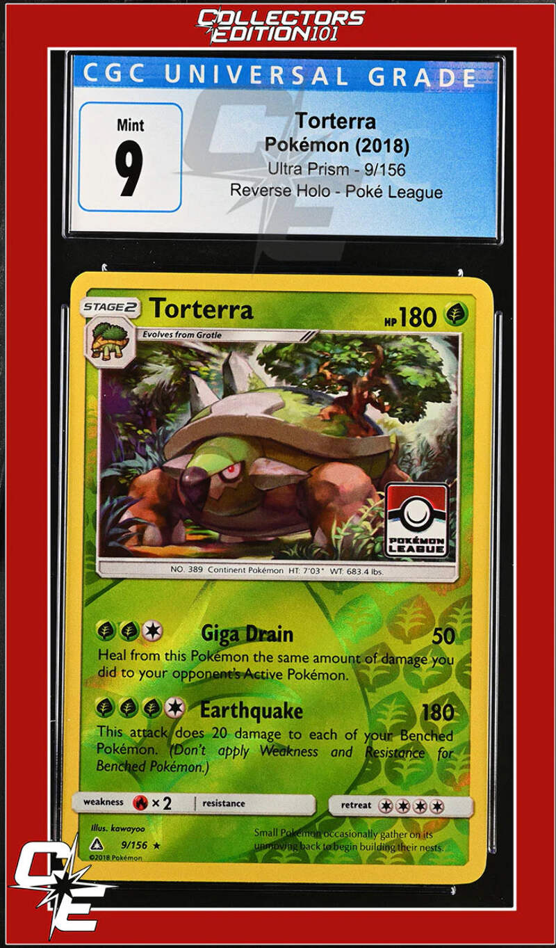 Ultra Prism Torterra 9/156 Reverse Holo Pokemon League CGC 9