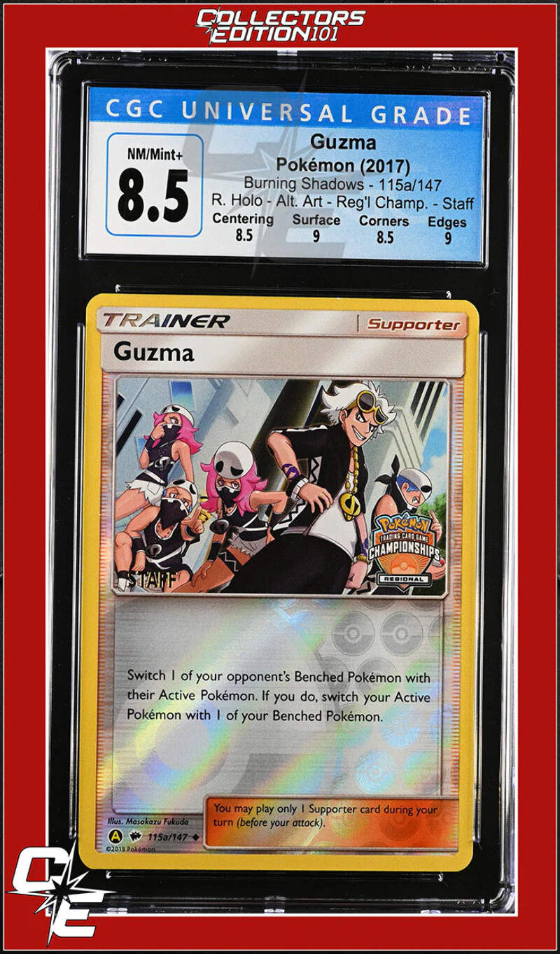 Burning Shadows Guzma 115a/147 Reverse - Alternate Art Regional - STAFF CGC 8.5