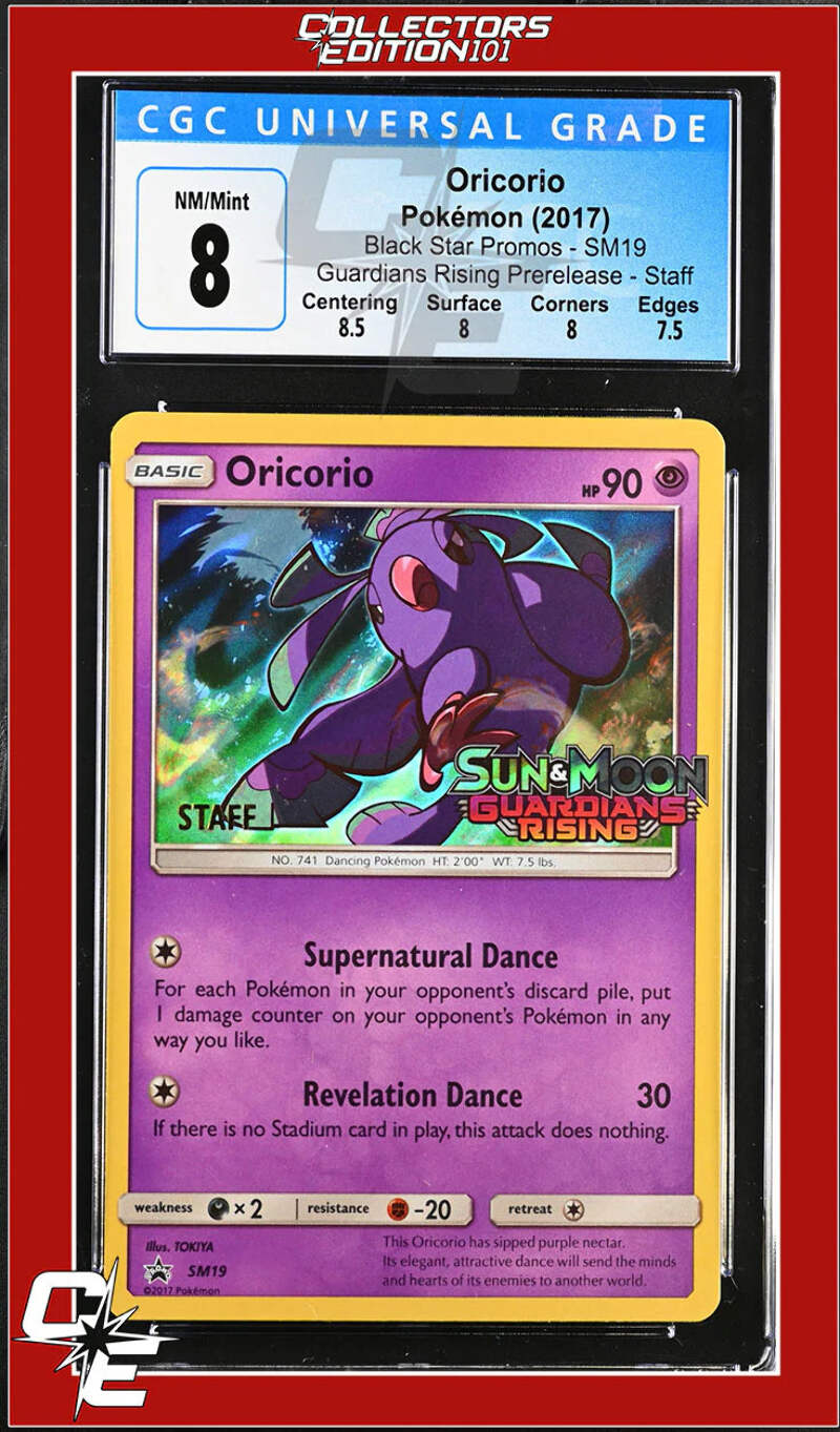 SM Black Star Promo Oricorio SM19 Guardians Rising Prerelease STAFF CGC 8