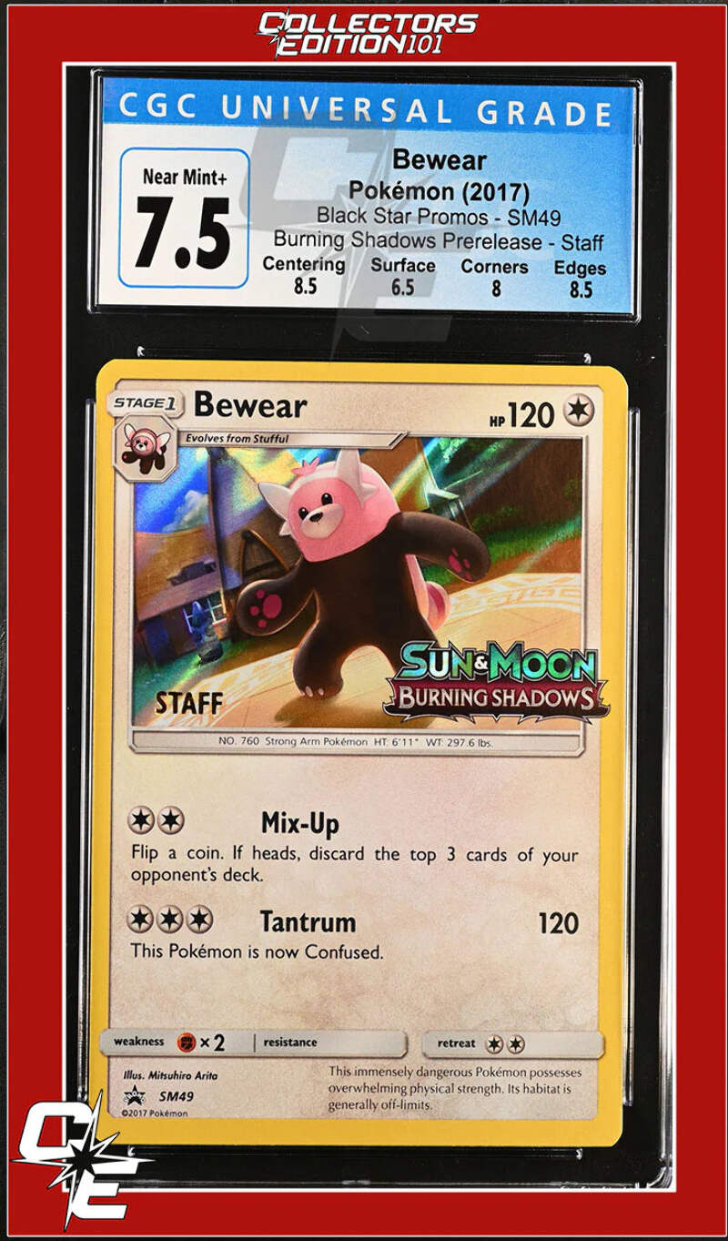 SM Black Star Promo Bewear SM49 Burning Shadows Prerelease STAFF CGC 7.5