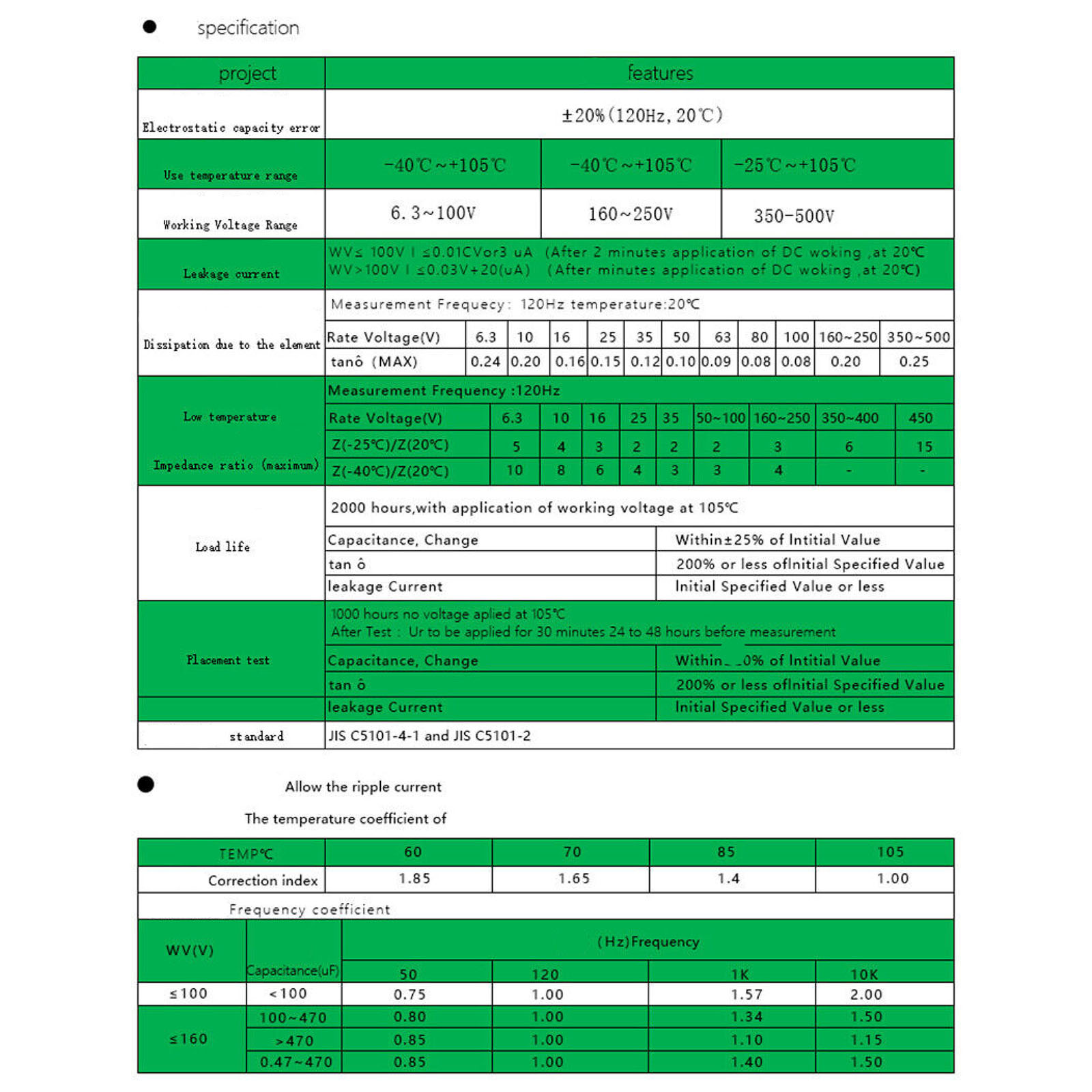 Product characteristics: High ripple resistance, 105 ℃, enough voltage, long life.