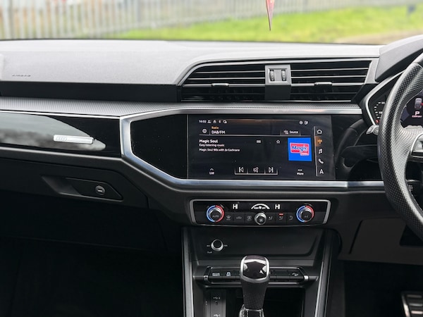 This 2021 71 reg Audi Q3 S Line Black Edition 45 TFSI e S Tronic comes in black with 207,000 miles. It is powered by a 1.4L petrol engine combined with an electric motor (plug-in hybrid), paired with an automatic gearbox, offering a smooth and efficient drive. Key features include 19in Audi Sport alloy wheels, Black Edition styling package, gloss black exterior trim, privacy glass, S Line body styling, and power-operated tailgate. The interior is well equipped with Audi Virtual Cockpit, flat-bottom multifunction steering wheel with paddle shift, dual-zone climate control, ambient lighting, piano black trim, and sport seats with S Line embossing. Technology includes MMI Navigation Plus with 10.1in touchscreen, Bluetooth connectivity, wireless Apple CarPlay, DAB radio, Audi Connect services with Amazon Alexa integration, and voice control system. Driver assistance features: rear parking sensors, cruise control with speed limiter, Audi Drive Select, lane departure warning, traffic sign recognition, and tyre pressure monitoring system. Safety features: Audi Pre-Sense front with pedestrian and cyclist recognition, multiple airbags, ESC stability control, ISOFIX points, hill hold assist, and anti-theft alarm system. A high-spec plug-in hybrid SUV combining performance, efficiency, and modern technology. Runs and drives well. £10,995. Nationwide delivery available.