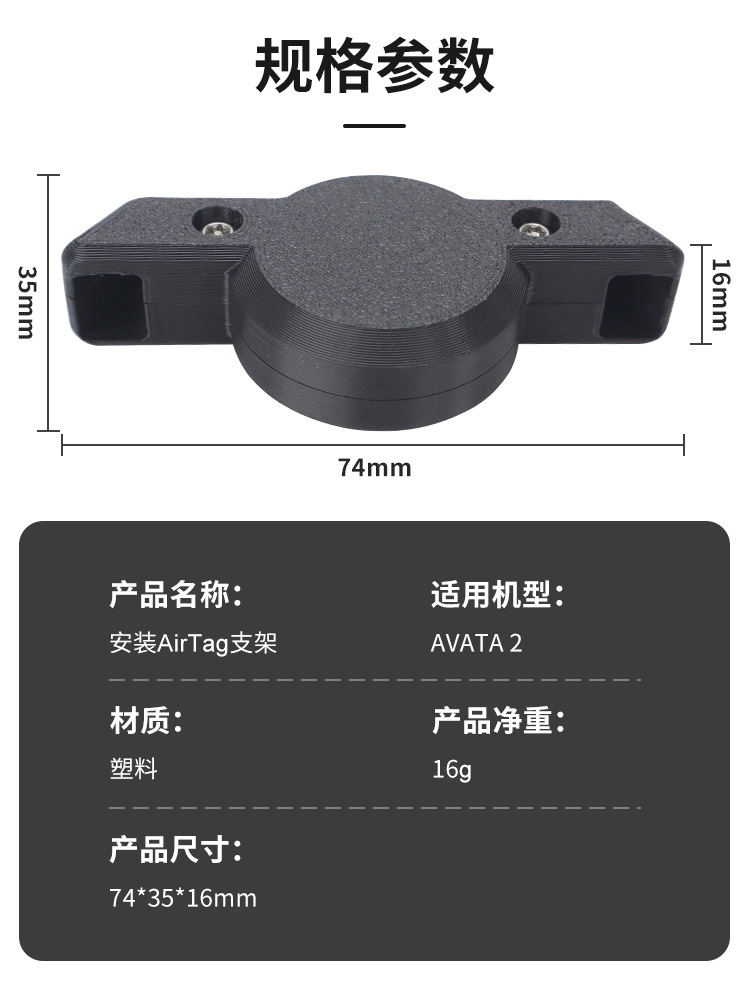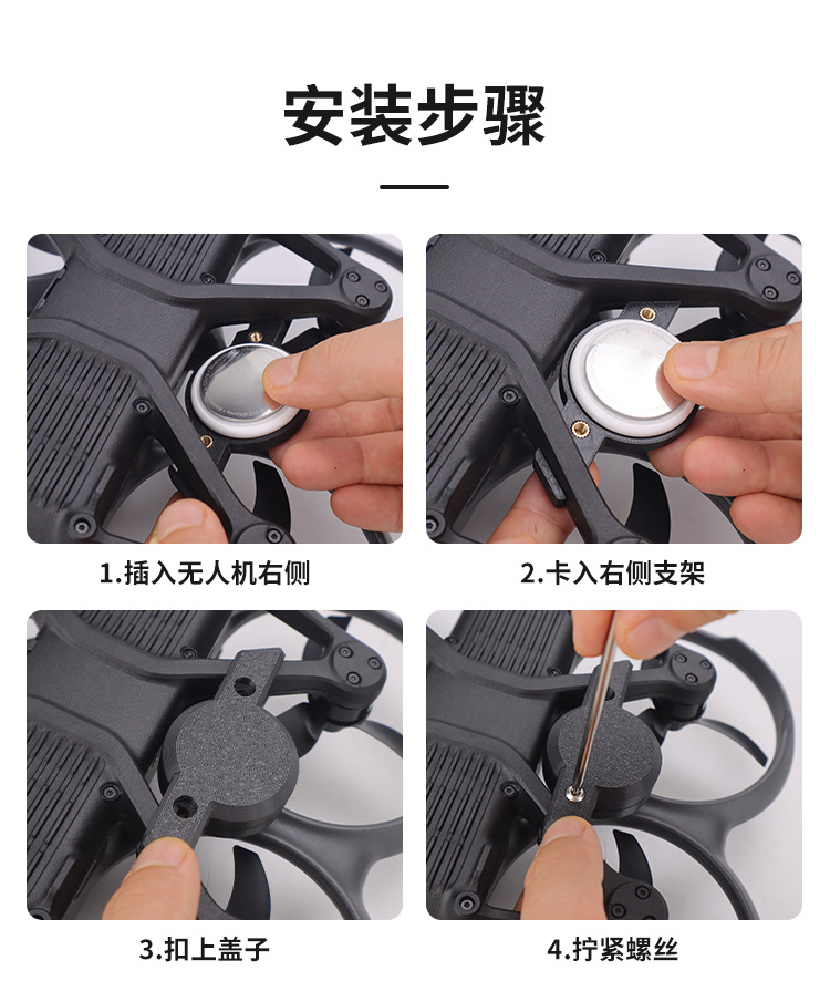 1. The installation bracket for the Avata 2 time travel machine anti loss locator is made of environmentally friendly plastic material, and the anti-theft screws are firmly and tightly fixed without shaking. It is equipped with a special wrench that is not easily disassembled and not easily stolen after the machine explodes