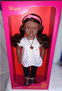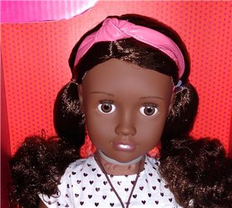**Please note-this is my model one I use for Aliyah, so it isn't the exact one you will get, for example the flaws on the box might be different or her hair might not be in the exact position, if you have any questions please message me. I am putting at a lower price for a limited time. New in box, there are some flaws on the package, it doesn't affect anything. For ages 3 years old and up. She is wearing a stylish top decorated in mini heart prints, a pair of shimmering pants, and a headband to accessorize her hairstyles. She also has a cute heart-themed necklace that represents kindness. And she keeps it close to her heart with every outfit she wears! Aliyah has a huggable soft body with lifelike features, from her brown eyes that open and close to her below shoulder-length brunette hair that's fun to style. When it's time for dress-up, her outfit has easy-open closures to quickly put on and remove. Comes from a smoke- free home. Thank you for stopping by~!~!~