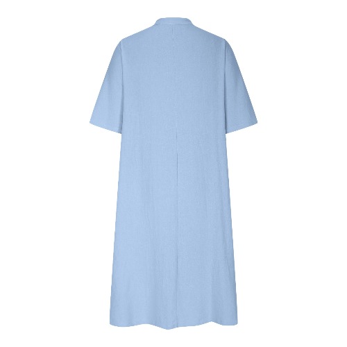 🌿Casual Essential! This linen - cotton blend midi dress features a V - neck, half - sleeve design, and a loose fit for ultimate comfort. Three buttons at the chest and two side pockets add stylish practicality. The A - line silhouette flatters all figures, perfect for daily wear, coffee dates, or weekend getaways. Made of breathable linen - cotton belend — lightweight, airy, and ideal for mild weather.