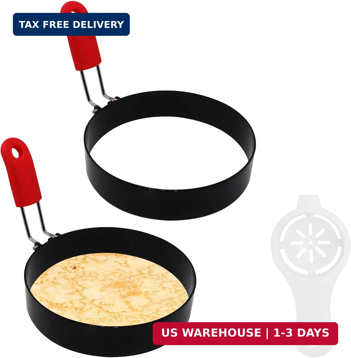 4 Inch Small Egg Rings for Frying Eggs with Foldable Handle, 2 Pack Stainless St