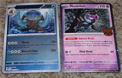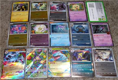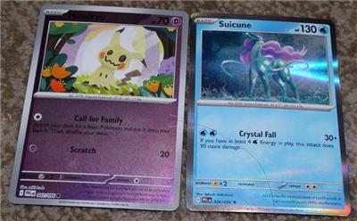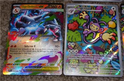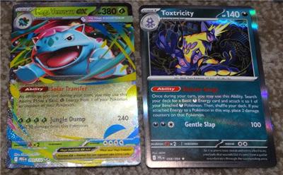 This sale is for a lot of Pokemon holographic cards that are mostly from Mega Evolutions (ME1) and Mega Evolutions: Phantasmal Flames (ME02). The ME2 cards are Mega Charizard X Ex (013/094), Mamoswine (025), Suicune (026), Mimikyu (042), Gligar (049), Toxtricity (068), Togedemaru (073) and Ambipom illustration card (107). The ME01 cards are Mega Vensusaur Ex (003/132), Raikou (048), Croagunk (078) and Tinkatuff (097). You will also get a promo card of Whimsicott (019), Halloween card of Munidori (095/167) and a game card. These are all pretty much straight from the pack and in great condition.