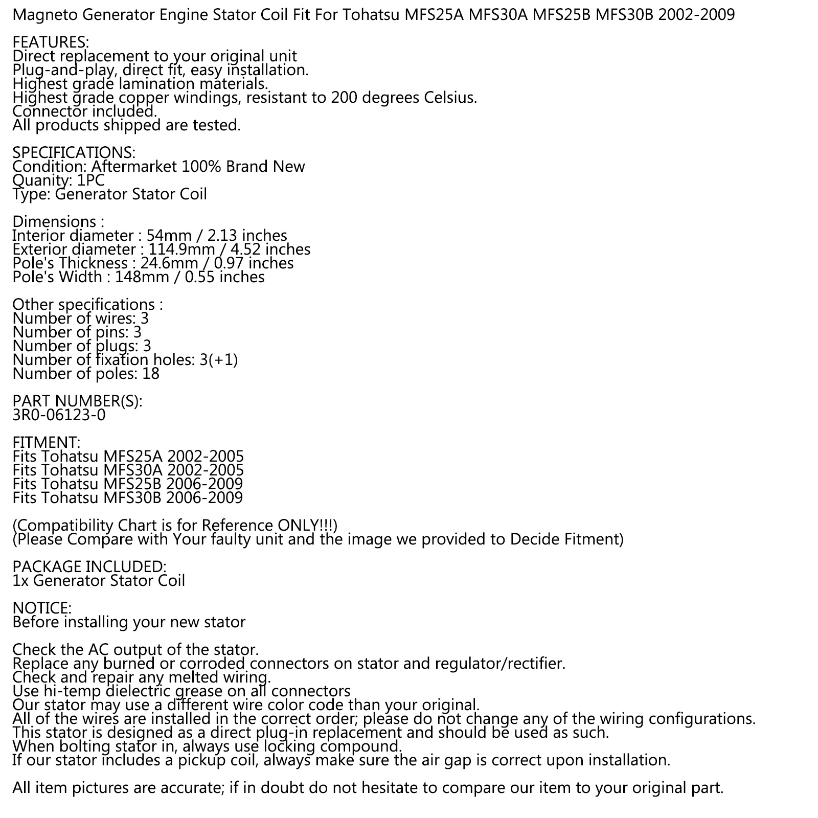 This stator is designed as a direct plug-in replacement and should be used as such.