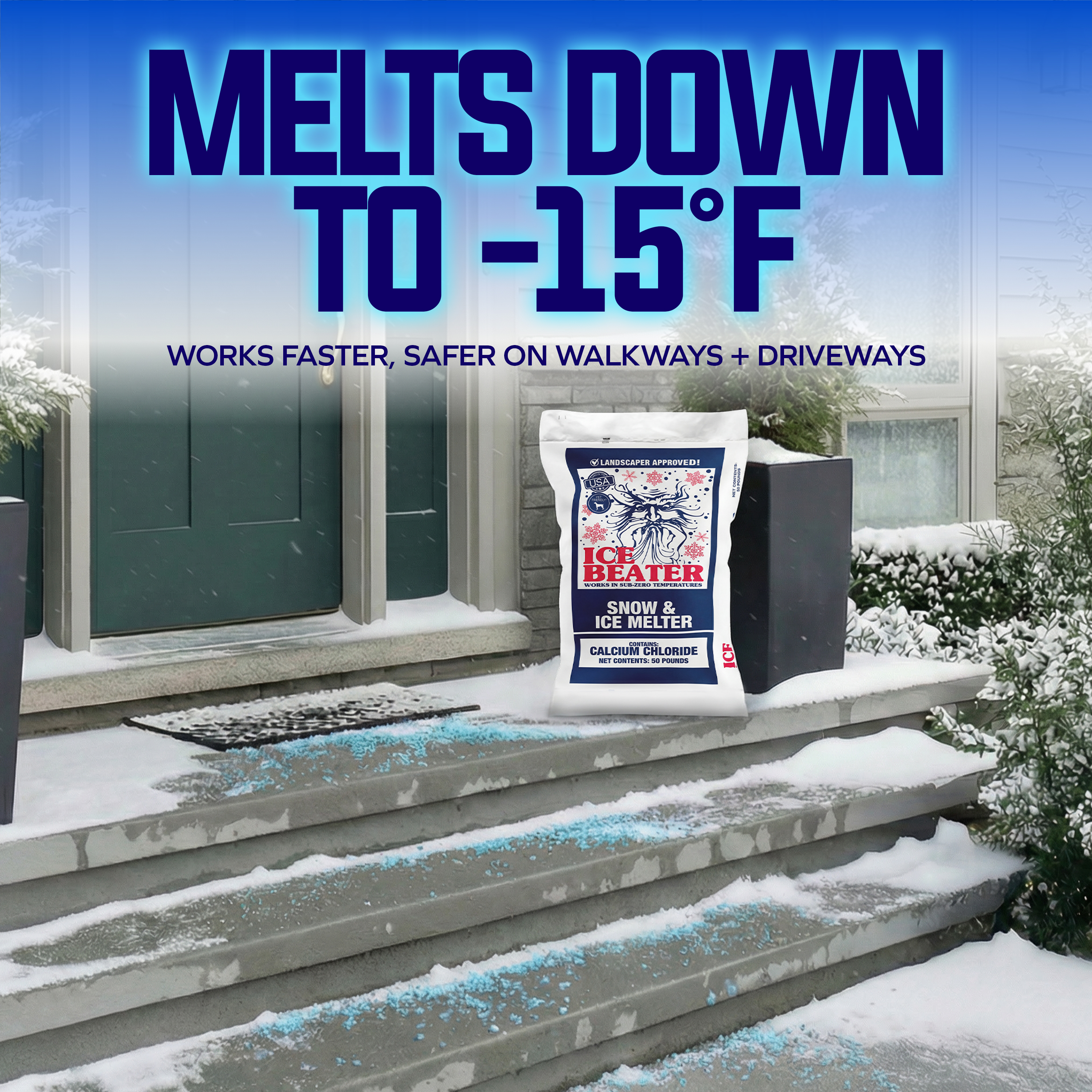 Stay ahead of winter weather with this powerful ice melt engineered for fast, dependable performance in cold conditions. Enhanced with magnesium chloride, this advanced formula attacks hard-packed snow and ice quickly and effectively, continuing to work in temperatures as low as -15°F. Its strong melting action helps create safer walkways, driveways, and entry points when winter conditions are at their worst.