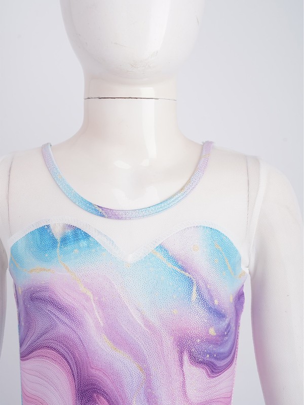 The long-sleeve and mesh patchwork design is both stylish and on-trend, adding a modern and fashionable touch to the leotard.
