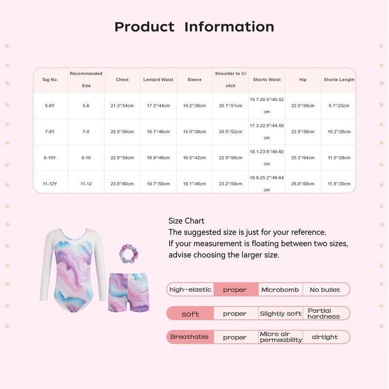 Set Include: 1Pc Leotard, 1 Pair of Shorts, 1Pc Hairband