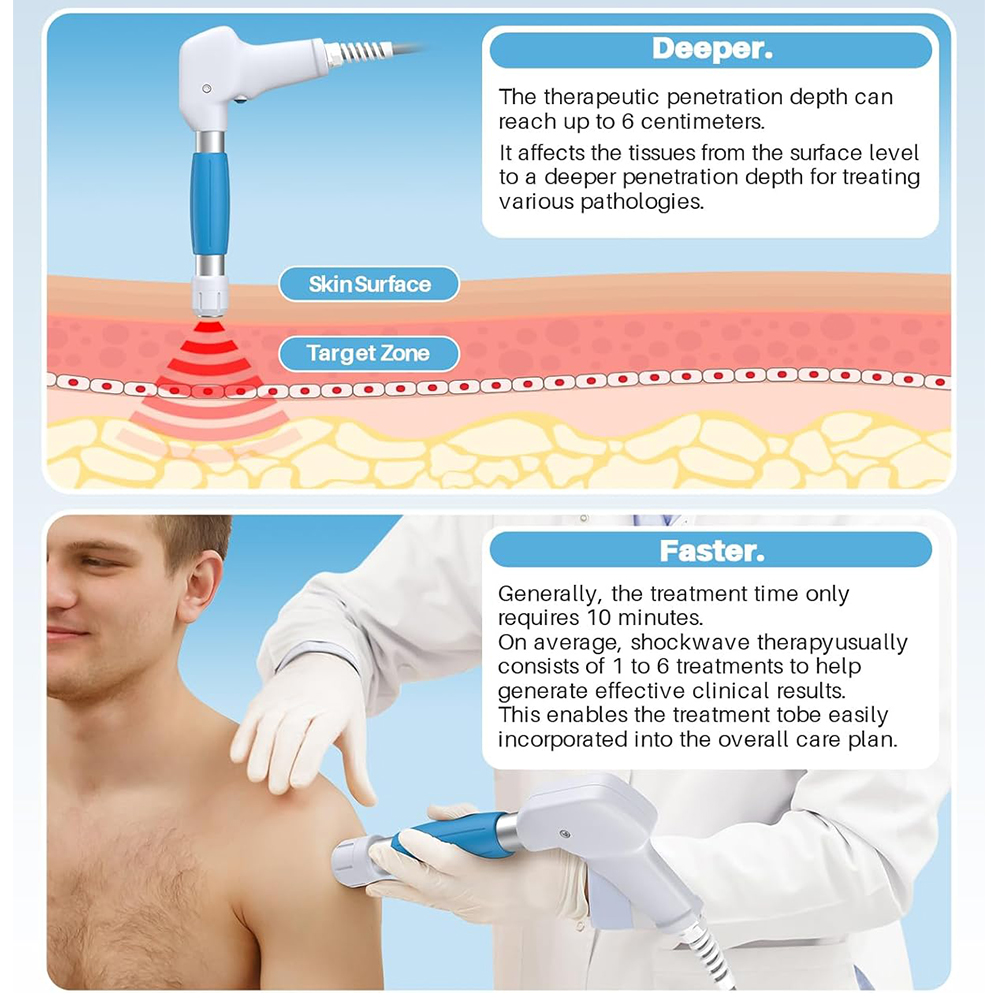 💙User-Friendly Design with Adjustable Settings: You don't need to make frequent appointments with a therapist, and can save up to $200 per treatment. Manufactured with a metal body, Professional shockwave therapy machine with an 8-inch HD touchscreen and an intuitive control interface, this device features 12 treatment modes and 5 treatment heads, all operated with a single button for ease of use. Each session lasts only 15 minutes, making it a safe, efficient, and quick treatment method.