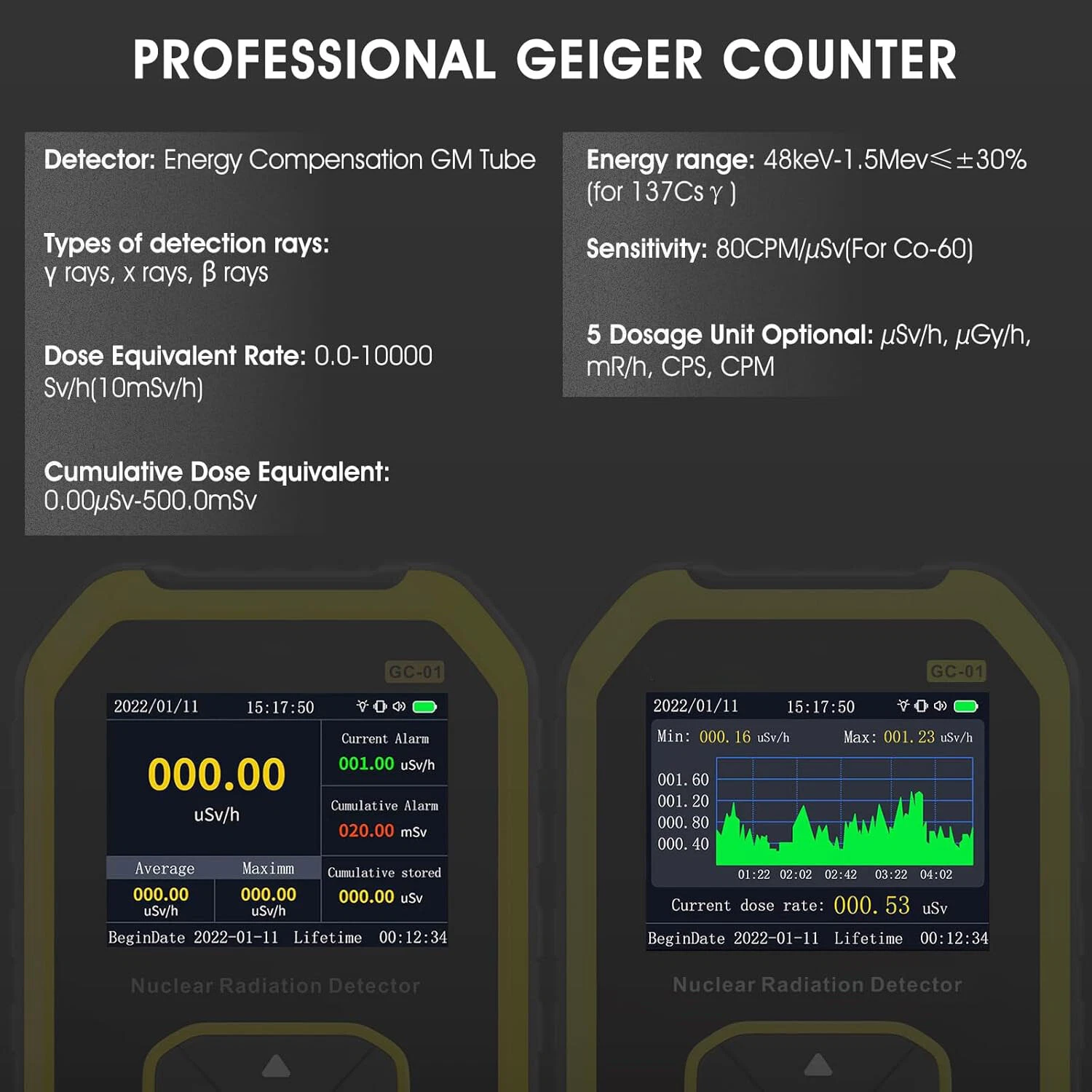 ✨ Wide Applications:This detector has a wide range of applications, making it suitable for family decoration, radiation-shielding manufacturing enterprises, hygiene, radiation treatments, nuclear labs, nuclear stations, import-and-export commerce inspections, building materials, petroleum chemicals, geology investigations, used steels, industrial flaw detection, and more.