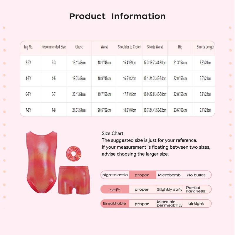 Set Include: 1Pc Leotard, 1Pc Shorts, 1Pc Hairband
