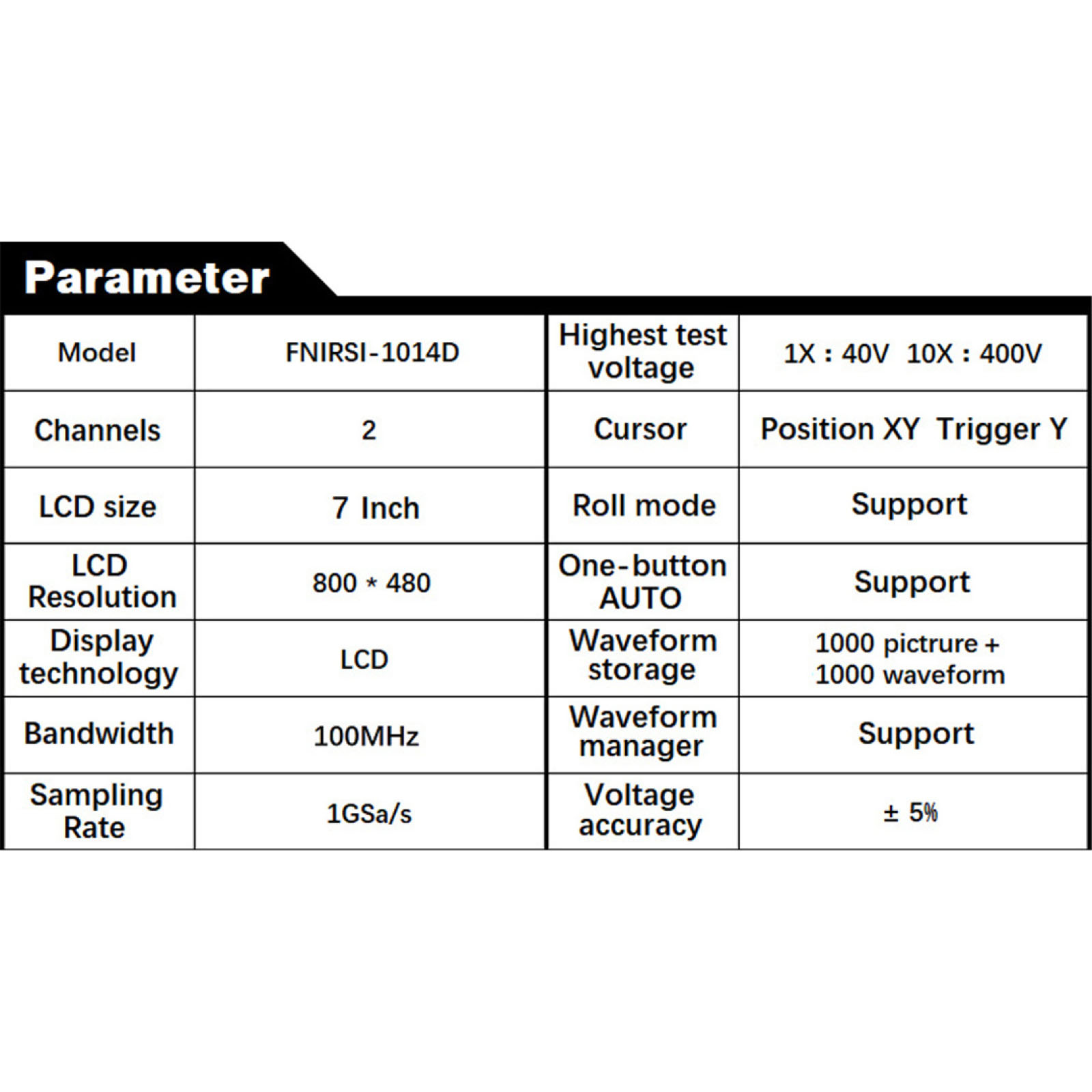 14:Built-in 1GB storage space, can store up to 1000 screenshots + 1000 sets of waveform data