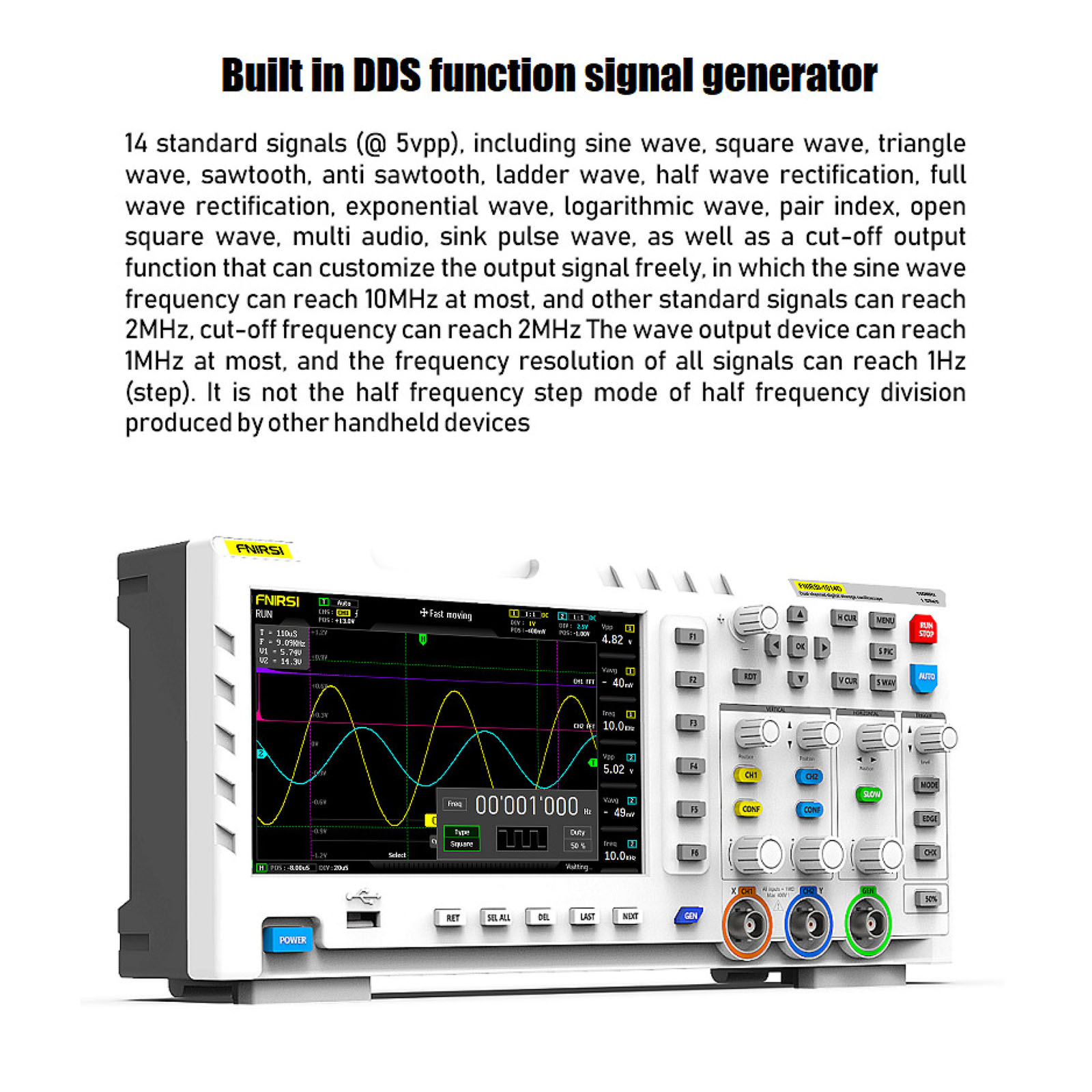 1:Built in DDS signal generator, support 12 kinds of function signal