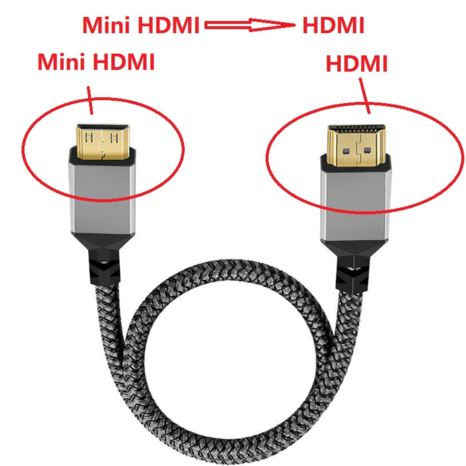 Mini HDMI CABLE: Mini HDMI to HDMI cable connects your camera or camcorder with TV or display that with HDMI port.