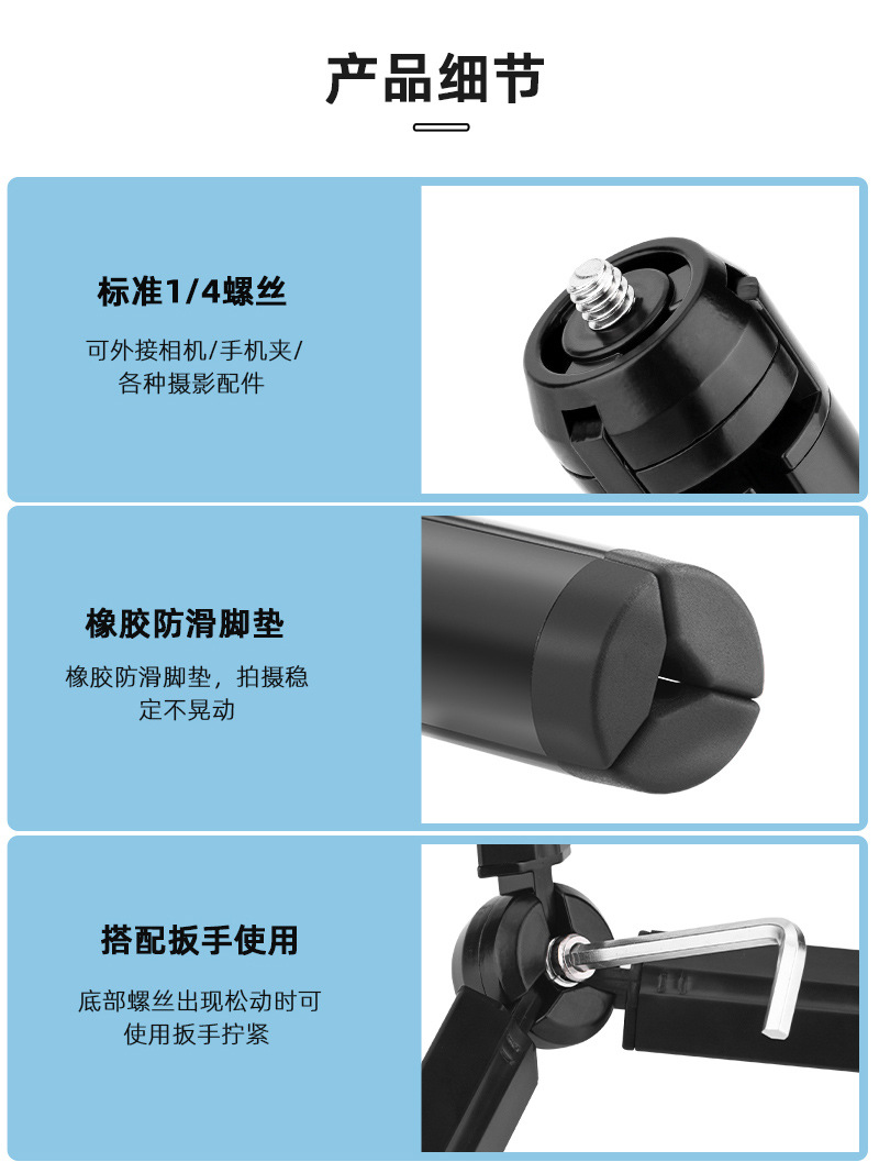 3. The bottom is equipped with anti slip silicone pads, which can be safely photographed in any harsh environment;