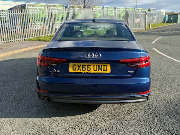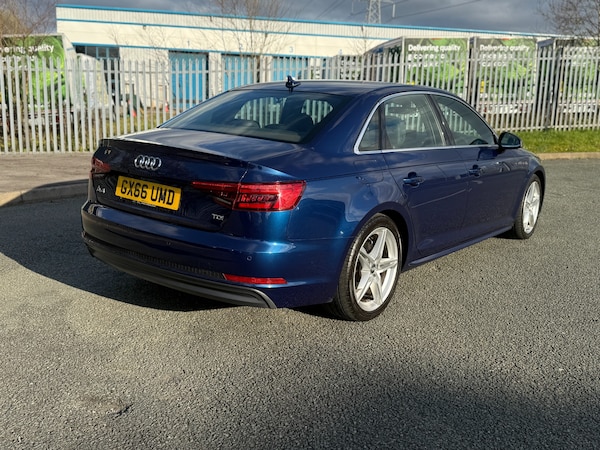 This 2016 66 reg Audi A4 S Line TDI S Tronic comes in blue with 133,000 miles. It is powered by a 2.0L diesel engine paired with an automatic gearbox, offering a smooth, efficient and comfortable drive. Key features include 18in alloy wheels, S Line body styling, high gloss exterior trim, chrome exhaust finishers, and LED headlights with dynamic rear indicators. The interior is well equipped with S Line multifunction steering wheel, aluminium trim, LED interior lighting pack, 3-zone climate control, and split-folding rear seats. Technology includes MMI Navigation system, Audi smartphone interface (Apple CarPlay & Android Auto), Bluetooth connectivity, DAB radio, and Audi sound system. Driver assistance features: parking sensors (Parking System Plus), cruise control with speed limiter, Audi Drive Select, and tyre pressure monitoring system. Safety features: Audi Pre-Sense City, multi collision brake assist, ESC stability control, multiple airbags, ISOFIX points, and anti-theft alarm system. A sporty and practical saloon with great specification and automatic gearbox. Runs and drives very well. £6,995. Nationwide delivery available.