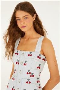 Dive into effortless charm with the Embroidered Cherry Denim Romper by FARM Rio. Featuring a playful square neckline and vibrant cherry embroidery that dances across soft denim, this jumpsuit celebrates joyful details. The tailored silhouette flatters with a relaxed fit, while thoughtful stitching adds a touch of artisanal warmth. Perfect for sunny days and spirited strolls, it’s a delightful fusion of bold color and whimsical Brazilian soul.