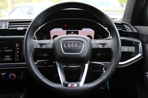OUR CARS ARE BOUGHT DIRECTLY FROM OWNER DRIVERS AND HAND PICKED TO BE SOME OF THE VERY BEST THAT YOU WILL FIND ANYWHERE !! Experience the perfect blend of luxury and performance with the Audi Q3, available for £22,995. This stunning SUV features the Comfort and Sound Package, enhancing your driving experience with premium audio and comfort features that make every journey enjoyable. The advanced Driver Assistance Package offers additional safety and convenience, ensuring you feel secure on the road with technologies designed to assist you in various driving situations. Further enhancing the driving experience, the Q3 comes equipped with a Rear-view Camera, providing excellent visibility and peace of mind while reversing or parking. The heated front seats add a touch of comfort, making those chilly mornings far more pleasant. The striking Daytona Grey exterior, combined with the Pulse Cloth-Twin Leather Sport Seats, showcases a stylish yet functional design that is sure to turn heads. This 2019 model boasts a powerful 2.0L engine, delivering an impressive 190 BHP alongside a smooth 7-speed automatic transmission that contributes to a responsive and dynamic driving experience. With features like LED headlights and a 3-Spoke Leather Multi-Function Steering Wheel, every detail has been thoughtfully designed to enhance both aesthetics and functionality. Don't miss out on this exceptional vehicle. Contact us to book a test drive today or call . BUY-FROM-HOME / ONLINE WITH NATIONWIDE DELIVERY Take advantage of our 'buy-from-home' service, which includes nationwide mainland UK delivery; this service enables you to complete the entire transaction from the comfort of your own home. Take a look at our website for more information. CLICK & COLLECT FROM OUR DEALERSHIP Reserve by phone / online and collect directly from our dealership. VIEWING / TEST DRIVE BY APPOINTMENT We’re open 7 days a week and we would love to welcome you into our dealership, customers are given the opportunity to view at their leisure, which includes unaccompanied test drives. OUR CARS ARE FULLY PREPARED AND READY TO DRIVE AWAY, OR BE DELIVERED. RECEIVE A GUARANTEED PART EXCHANGE VALUATION AND PRE ARRANGE YOUR FINANCE ON OUR WEBSITE, ALL FROM THE COMFORT OF YOUR OWN HOME. THEN SIMPLY TURN UP AND DRIVE AWAY, OR SIT BACK AND WAIT FOR YOUR NEW CAR TO ARRIVE !! OUR CARS SELL VERY QUICKLY, SO CALL NOW FOR FURTHER INFORMATION OR TO RESERVE THIS CAR !! WE PUBLISH THE FOLLOWING DOCUMENTS ON OUR WEBSITE, V5, SERVICE HISTORY AND HPI CERTIFICATE !! PLEASE NOTE THIS CAR IS EITHER ELECTRIC,PETROL OR EURO6 AND EXEMPT FROM THE LONDON EMISSIONS CHARGE !! AN AWFUL LOT OF CARS THESE DAYS HAVE LITTLE OR NO RECORDED SERVICE HISTORY, WE THEREFORE APPLY THE SAME RIGOROUS STANDARDS OF PROVENANCE AND PREPARATION TO ALL OUR VEHICLES, ONLY BUYING CARS WITH DOCUMENTED SERVICE HISTORY AND URGE YOU TO DO THE SAME !!. 1 x USB-C and 1 x USB-A Port with Charge and Data Functions,19in Alloy Wheels - 5-Twin-Spoke Dynamic,3-Spoke Leather Multi-Function Steering Wheel - S Badging and Grips in Perforated Leather with Contrast Stitching,6 Passive Loud Speakers,6-Airbag System,Adjustable Rear Seat Bench-Backrest with Centre Armrest and Cupholder,Aluminium Look Interior Elements,Aluminium Roof Rails,Aluminium Window Trims,Ambient Lighting Pack,Anti Theft Locking Wheel Bolts,Anti-Theft Alarm,Audi Connect Infotainment Services Plus including Amazon Alexa Integration (3 Year Subscription From New),Audi Connect Safety and Service - e-call,Audi Drive Select,Audi Pre-Sense Front with Pedestrian and Cyclist Recognition,Audi Side Assist,Audi Smartphone Interface Includes Wireless Apple CarPlay,Audi Virtual Cockpit - 10.25in Display,Auto Dimming and Frameless Rear View Mirror,B and C-Pillar Trim in High-Gloss Black,Bluetooth Interface,Body Coloured Door Mirrors,Bumpers in Full Body Colour Paint Finish,Camera-Based Traffic Sign Recognition,Cloth Headlining in Black,Cruise Control with Speed Limiter,DAB Digital Radio,Detail in Dashboard Around the MMI Touch Colour Display in Glass Look - Black with Surround in Aluminium Look,Door Mirrors - Electrically Folding - Adjustable and Heated with Integrated LED Side Indicators and Kerb-view Function for Passenger Side,Dual-Zone Electronic Climate Control,ESC - Electronic Stabilisation Control inc ABS - ASR and EDL,Electric Windows - Front,Electromechanical Parking Brake,Electronically Operated Child Locks,First Aid Kit and Warning Triangle,Frame of Front Side Air Inlets in Platinum Grey - Matt,Front Centre Armrest,Front Spoiler Blade in Platinum Grey - Matt,Front Spoiler in Selenite Silver - Matt,Front and Rear Floor Mats in Black with Contrast Stitching in Rock Grey,Gear Knob in Perforated Leather,Grille Surround in Silver - Chrome,Grille Vertical Bars in Aluminium Silver - Matt,Hill Descent Control,Hill Hold Assist,ISOFIX Child Seat Mounting for the Front Passenger Seat with Front Passenger Airbag Deactivation and ISOFIX