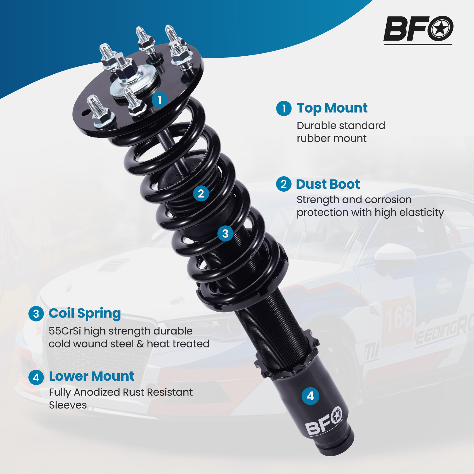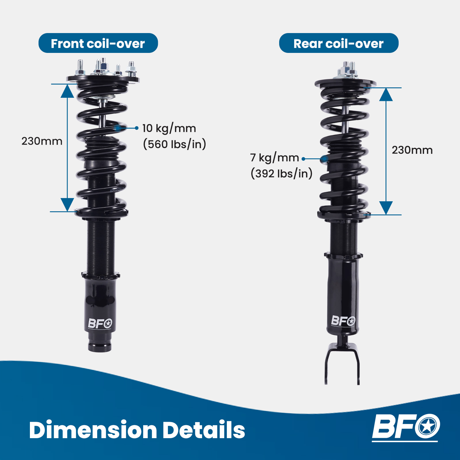 - Spring length Rear: 230mm