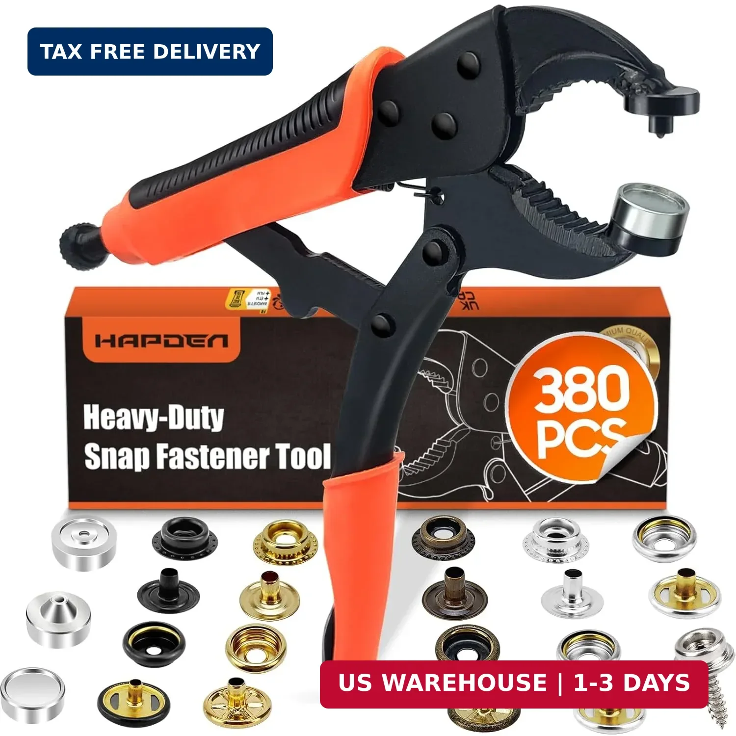 • More Comprehensive: You Can Save A Hole Punches If You Buy Our Snap Fastener Tool Kit; Hapden Snap Installation Tool Adds A Punching Die Allowing You To Complete All Projects On One Tools; Snap Tool For Boat Covers Comes With Extra Fasteners - 100 Set 4 Color Canvas Snaps(Silver, Black, Bronze, Gold)