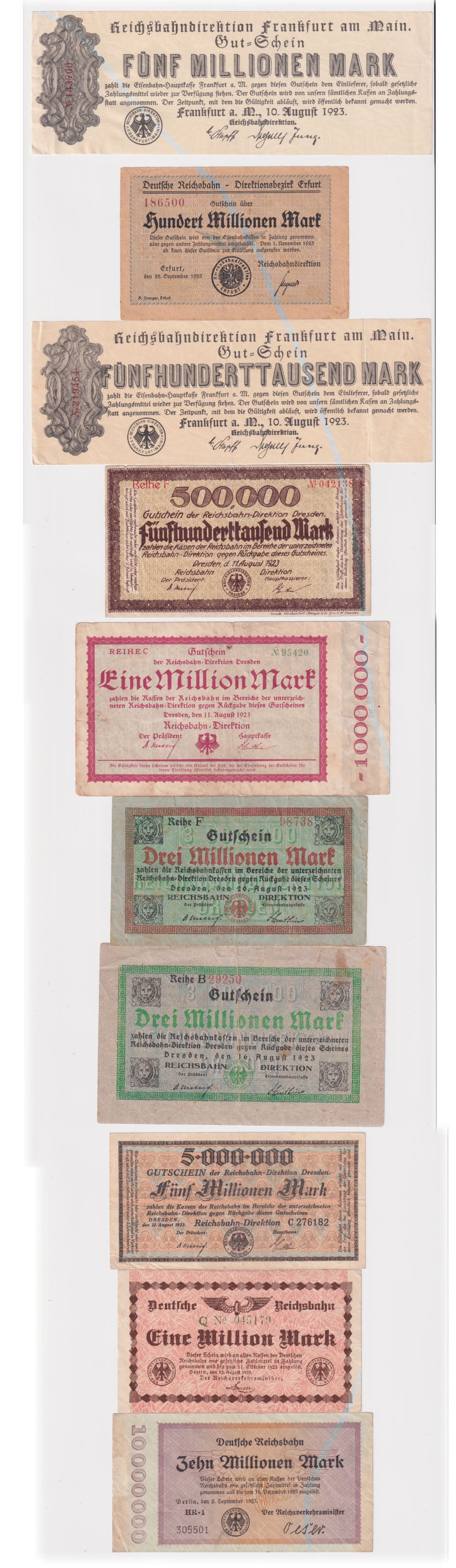 Lot von 10 diversen Inflationsnotgeld