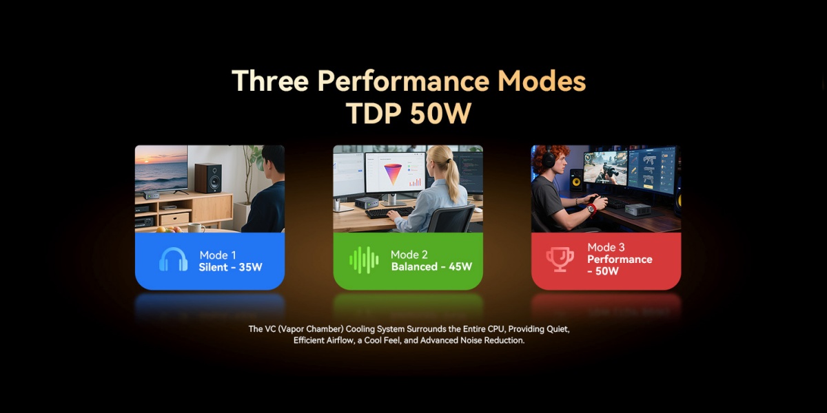 | CPU | AMD Ryzen 5 7640HS (6C/12T, Turbo Boost Up to 5.0GHz, 16MB Cache) TDP 50W | Other Functions | Wake ON Lan, Auto Power ON, Performance Settings. |