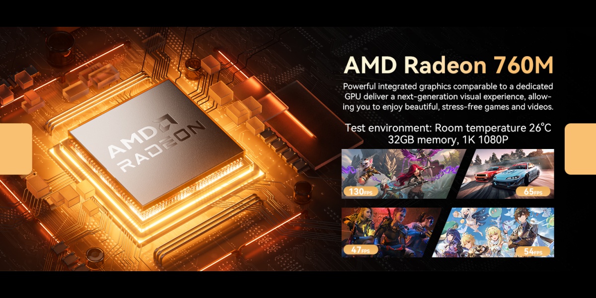 | Graphics GPU | AMD Radeon 760M 2600 MHz | lnterface | 1* DC Jack Port; 3* USB 3.2 Gen2 (10Gbps) Port; 1*USB 2.0 Port; 2* RJ45 (2500Mbps LAN) Port; 1* HDMI 2.0 Port; 1* Type-C (USB 4.0) Port; 1* DP Port; 1* 3.5mm Audio Jack (CTIA) Port |