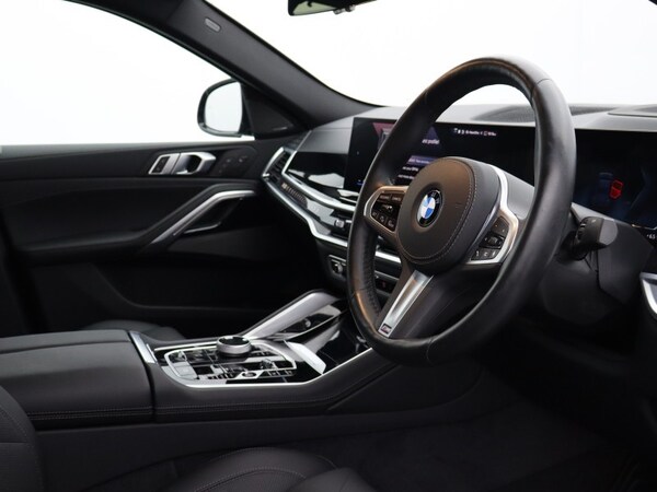 Here at Lloyd BMW North Tyneside, we are delighted to welcome this stunning BMW X6 xDrive30d M Sport finished in Midnight Black paint with a Black Sesafin upholstery. This BMW X6 xDrive30d comes with manufactures warranty until January 2027 through the BMW Approved Programme, offering peace of mind. Powered by a 3.0L diesel engine delivering 547hp and 680nm of torque, paired with the xDrive all-wheel-drive system, the X6 xDrive30d provides exceptional handling and power for unforgettable driving experiences. As the M Sport Pro model, it features deeper, sportier front and rear bumpers and the iconic BMW glowing Kidney grill. Sitting on a set of 21'' M Y-spoke Bi-color Alloy Wheels with M Sport Brakes with red calipers and M Adaptive Suspension, giving the X6 a stealthy, smooth and reliable drive. Enhanced with the Technology plus Package, stay connected with apple carplay and enjoy your favorite music through the premium Harman Kardon surround sound system. You won t miss a beat when equipped with the wireless charging station. The technology pack also comes with a beautiful 360 reverse camera making sure you get into tighter spots with ease all shown on the digital display. Driving is made simple with a head up display paired with easy to use on board navigation with real time traffic information and cruise control. The interior offers ultimate comfort and luxury with the added comfort plus pack and crystal clear clarity controls. The front seats are not only heated with ventilated memory settings but equipped with a massage function that will truly excel your driving experience. Adapting to your ideal position with a touch with the added benefit of the Heat Comfort System extends warmth through the door cards, making sure you are warm on them on colder journeys. Rear seat passengers are equally well catered for with heated seats and Four-zone automatic climate control allows personalized temperature control for all, adding to the atmosphere of the luxury this BMW. We invite you to visit Lloyd North Tyneside BMW to experience this for yourself.