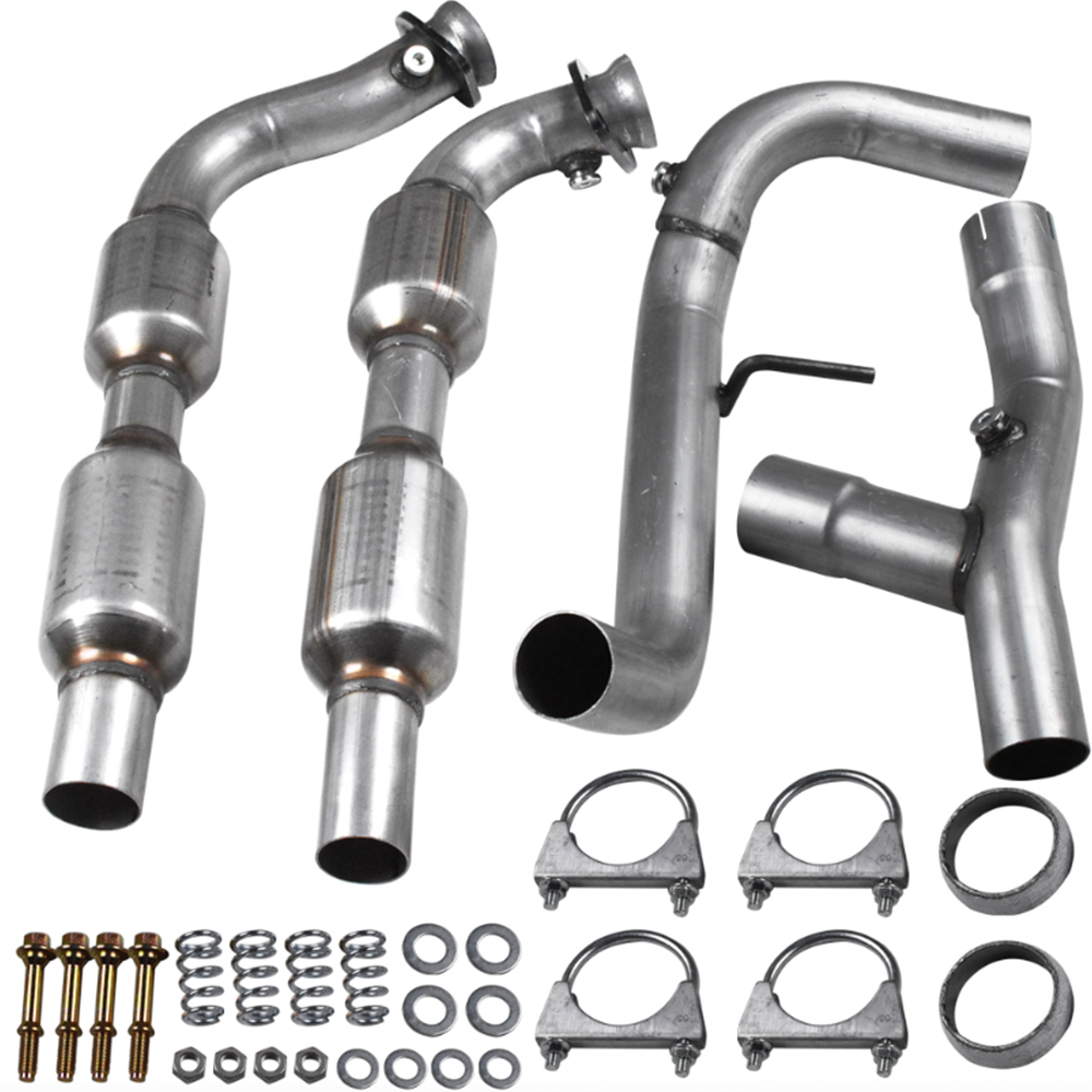 Specification: 645385(Left) Body Material: Stainless Steel Inlet Gasket: Not Required Inlet Hardware: None Inlet Type A: 2 Bolt Loose Flange w/ Female Flare O2 Sensor Ports: 2 Outlet Gasket: Not Required Outlet Hardware: Yes Outlet Type A: 2.50" OD Pipe Overall Length (IN): 46 Substrate Material: Ceramic Type: Federal / EPA Direct-Fit 645384(Right) Body Material: Stainless Steel Inlet Gasket: Not Required Inlet Hardware: None Inlet Type A: 2 Bolt Loose Flange w/ Female Flare Inlet Type B: 2.50" ID O2 Sensor Ports: 2 Outlet Gasket: Not Required Outlet Hardware: Yes Outlet Type A: 2.50" OD Pipe Overall Length (IN): 47.38 Substrate Material: Ceramic Type: Federal / EPA Direct-Fit Features: EPA Compliant Direct fit for installation onto existing exhaust system. Hardware included. 100% new. Made from premium quality materials to meet orginal specifications. Precious metals and large substrate minimize pollutants in your exhaust Quality inspected and tested - high heat resistance, low emissions and sounds levels Special design for maximum flow increases the power and performance of your engine Fitment: 1998-2000 Ford F-150 5.4L(Only 4WD) Package Included: 1x Left Catalytic Converter w/Installation Accessories 1x Right Catalytic Converter w/Installation Accessories Caution: Converters are designed to last the life of a vehicle. If your converter needs to be replaced it may be due to an emissions error/problem in your engine tuning. Converters that overheat due to engine problems may turn blue or bronze. These problems must be corrected BEFORE installation of a new converter. Any modifications of any kind will void all warranty coverage for this item. Warranty is voided if catalytic converter substrate is melted or broken; this is due to an issue with the car itself and not the catalytic converter. Due to its size and shape it may encounter cosmetic flaws during its stocking and shipping process. The powder coating finish is designed to add shelf life by minimizing surface scratches which may deteriorate over time due to temperatures reached once in use. Products damaged as a result of abuse, misuse, improper repair, improper installation, alteration or modification will not be covered by the warranty. O2 sensors must be replaced when you replace the converter or warranty will be void. We have determined that failure of either the front O2 sensor (the front wide-band sensor), also known as an Air-Fuel Ratio Sensor or the read downstream sensor, can trigger a false P0420 code. Both sensors should be replaced with you replaced the converter. Note: This product is not legal for sale or use in California, Colorado, New York and Maine due to state emissions regulations.