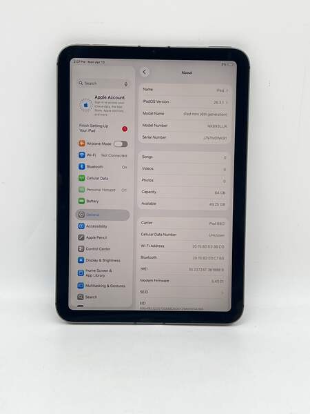 Experience the power of the Apple iPad Mini 6th Generation with its advanced A15 Bionic processor and a stunning 8.3 inch IPS LCD display. This tablet features 256GB of storage and 4GB of RAM, offering ample space and speed for all your apps, videos, and games. With 5G connectivity, you can stay connected anywhere, making it ideal for both work and leisure.