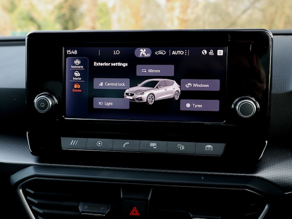 Full link smartphone integration with Mirror Link, wireless Apple CarPlay and wired Google Android Auto, Cruise control with speed limiter, Rear parking sensors, Two USB Type C ports in front, Start/stop system with regenerative braking, Lane assist, Front assist with forward collision warning braking reaction to vehicles, pedestrians and cyclists, XDS electronic differential lock and dynamic traction support, Auxiliary input socket, Body coloured exterior mirrors with integrated LED indicators, Electric front/rear windows, Electrically adjustable and heated door mirrors, LED front fog lamps, LED headlights and LED tail lights, LED rear fog lamp, Rain sensor, Separate daytime running light with automatic headlight control, 60/40 split rear bench seat, Driver seat lumbar adjustment, ISOFIX points in outer rear seats with top tether anchorage points, Leather flat bottomed, perforated steering wheel and leather gearstick, Two tone cloth upholstery, Media system pack - Leon, Driver and front passenger airbags with front passenger airbag de-activation, front side and curtain airbags, Brake control system - ESC and brake booster, Electronic parking brake, Hill hold control, Tiredness recognition system, driver alert system, KESSY Go (Keyless start), 16"" Urban alloy wheels with 91V tyres