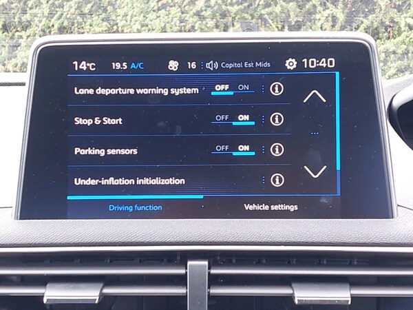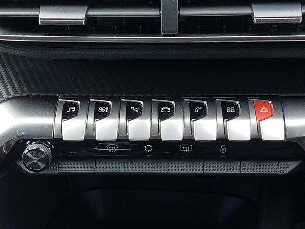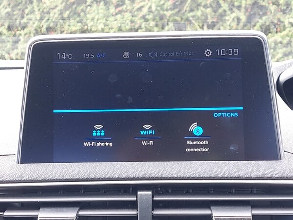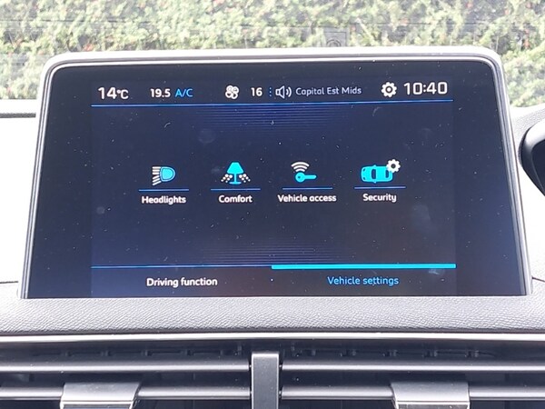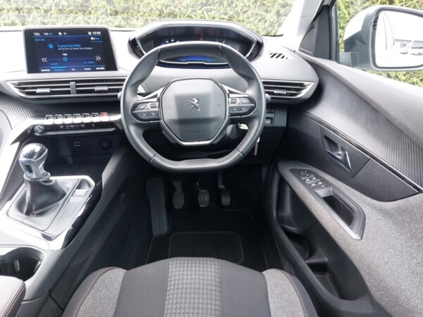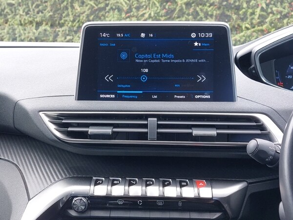 Speed limit recognition and recommendation, Rear parking sensor, Programmable cruise control and speed limiter, PEUGEOT i-Cockpit with configurable 12.3"" Head-up digital instrument panel, PEUGEOT i-Cockpit with compact sports steering wheel, PEUGEOT i-Cockpit with 8.0"" capacitive touchscreen in centre console, Mirror screen with mirror link, apple carplay and android auto, Lane departure warning system, Exterior temperature indicator with ice warning, Driver alert system, Digital clock, Bluetooth telephone facility, Voice recognition for radio, navigation and telephony features, Steering column mounted multifunction controls, DAB Digital radio, 6 speakers radio with mp3 compatible, USB socket, LED daytime running lights, Rear LED Peugeot signature 'Claw Effect' lights, LED sequential scrolling front indicators, LED rear lights, Halogen headlights, Halogen foglights, Electric operated/heated door mirrors, Automatic hazard light activation upon heavy brake application, Chrome radiator grille and surround, Blue ambient lighting to head up instrument panel, Blue ambient lighting for connecting zone, 12V Sockets in dashboard, rear cabin and load area, Dual zone automatic climate control, Electric power steering with reach and rake adjustable steering column, Meco cloth upholstery, Visibility pack - 3008, Safety pack - 3008, Electric parking brake, Auto city emergency braking, Hill start assist, Electronic immobiliser, Automatic door lock/re-lock after 30 seconds, Carbon effect Dashboard, front and rear door panel finish, Satin chrome dash trim, Satin chrome instrument dial surrounds