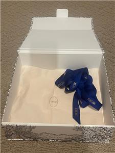 This item is mine from a genuine Dior Sweater purchase a few days ago. Brand New, Clean "Never used Authentic Christian Dior Box great for a a purse, Sweater, acessories and so much more. I am including the original tissue paper, Dior sticker and Dior Ribbon which I received with my purchase. If you are a Dior Gift Box Collector- this is a MUST!