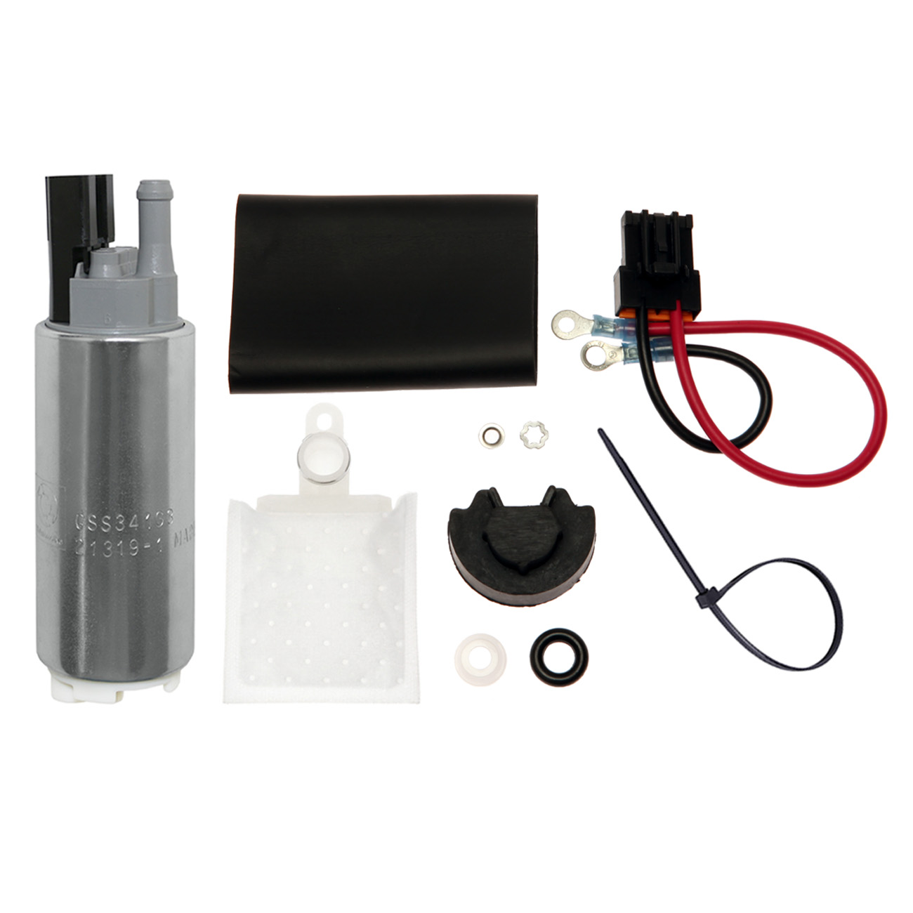 Originally called the GSS341 this pump has been revamped and reintroduced as a G3. The GSS341G3 39mm in-tank pump features a 255 lph flow rate and is rated for 550 horsepower. The operating pressure is 40 psi (final fuel pressure will be set by the regulator.) The difference between the 340G3, 341G3 and 342G3 pumps is that they have different inlet orientations. GSS341G3 has a 180° outlet fitting to inlet orientation.