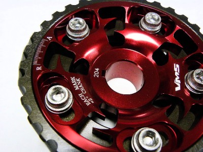 The VMS Racing 5-bolt design Cam Gears eliminates any chance of slippage while the hard-anodized finish prevents premature wear. This allow for fine tune adjustments to cam timing to maximize engine performance, and tailor power characteristics for various driving conditions. VMS Racing cam gears are very reliable and designed with the best quality ever.