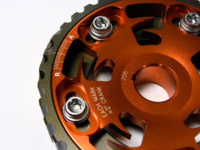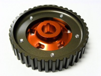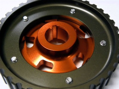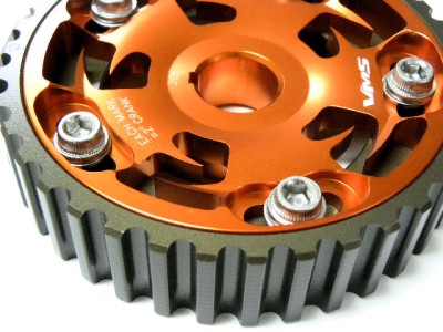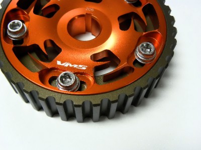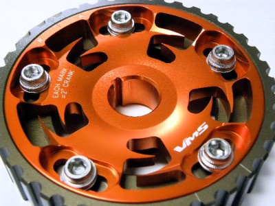 The VMS Racing 5-bolt design Cam Gear eliminates any chance of slippage while the hard-anodized finish prevents premature wear. This allow for fine tune adjustments to cam timing to maximize engine performance, and tailor power characteristics for various driving conditions. VMS Racing cam gears are very reliable and designed with the best quality ever.