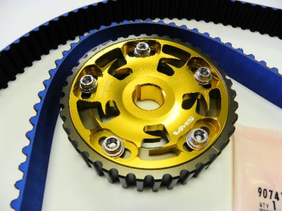 Auction is For 1 VMS RACING Adjustable Cam Gear ,1 Gates Racing Blue Timing Belt 1 Genuine Honda Cam Gear Key & 1 Free Gates Racing Aluminum Emblem