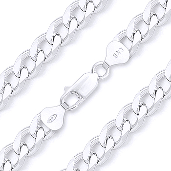 8mm Cuban / Curb Link Italian Chain Necklace in Solid .925 Sterling Silver